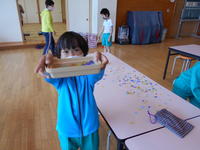 メンコやこま、あやとり、けん玉、おはじき、お手玉といった遊びに取り組みましたが、やり慣れないものが多く、初めのうちは苦戦する姿が多く見られました。それでも、先生方にいろいろな技を教わり練習をすることで、だんだんと上手にできるようになってきました。ゲームなどの普段の遊びとは異なりますが、子どもたちにとってとてもよい体験となったようです。