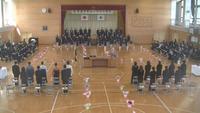 体育館に移動すると、始めに6年間皆勤賞、算数検定満点賞の表彰を行いました。そして少しずつ緊張感がでてきて、いよいよ卒業式が始まりました。小学校生活最後の校歌を歌い、卒業証書授与が行われました。卒業式の練習もわずか2日しかできていなかったものの、移動の仕方や証書の受け取り方などしっかり覚えており、堂々としておりました。さすが6年生ですね!校長先生から卒業証書を受け取り、保護者に証書を渡した後「6年間ありがとう」と伝えると、保護者の方も嬉しそうな表情でした。