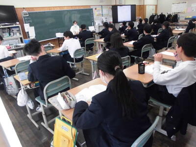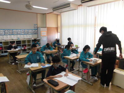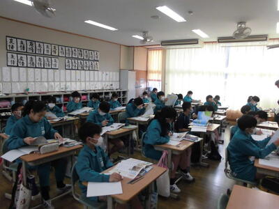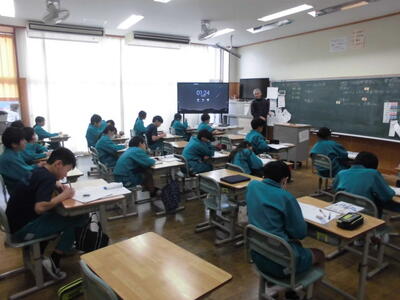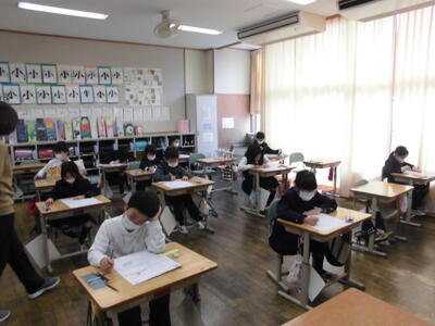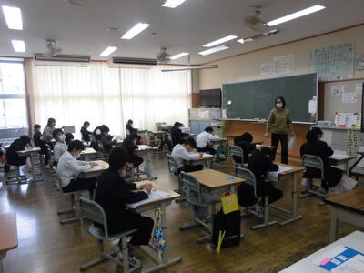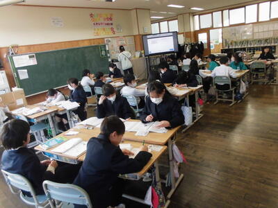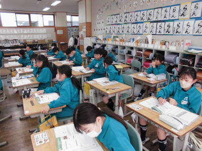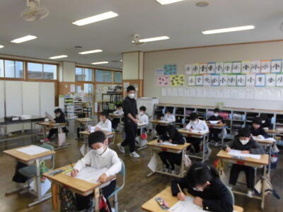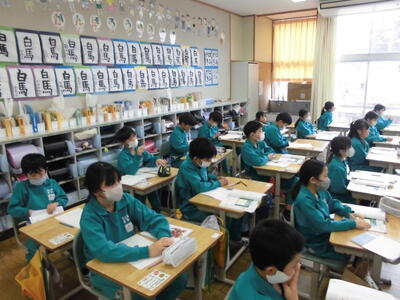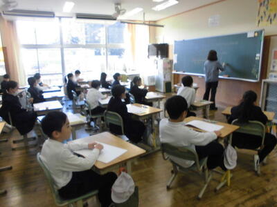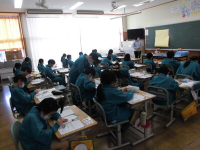 5年1組は国語科「カンジー博士の 暗号解読」の学習です。