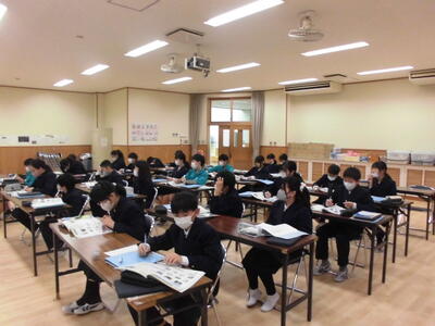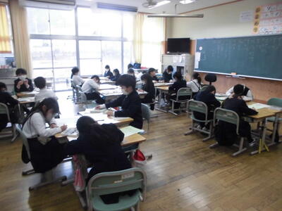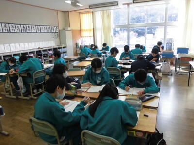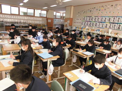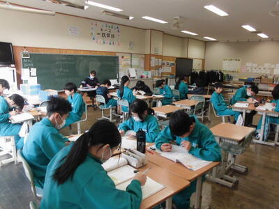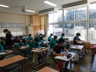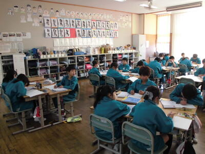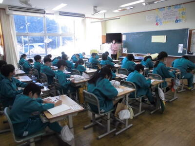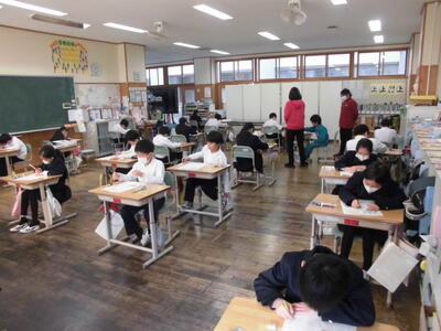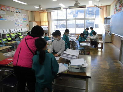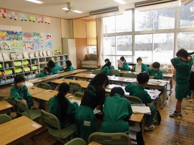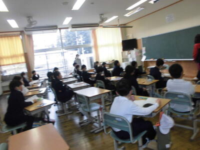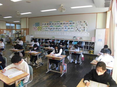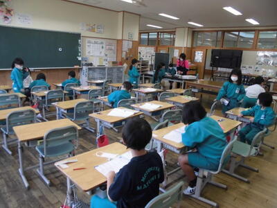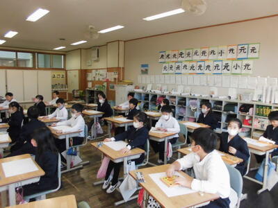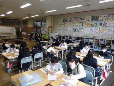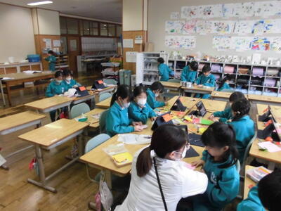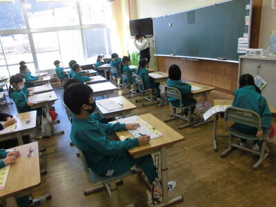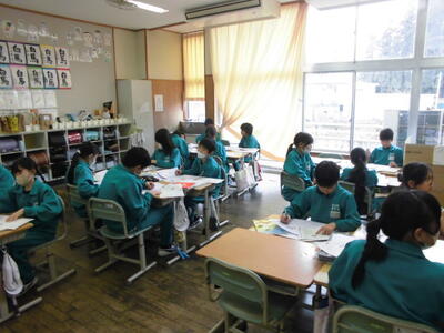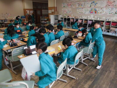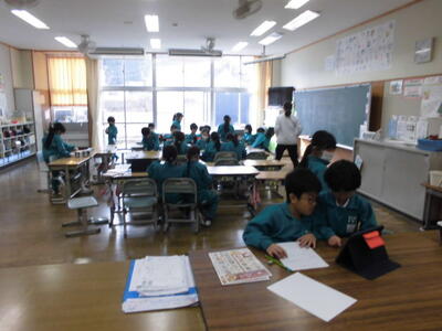 2年2組は学級活動。お楽しみ会の準備をしてます。