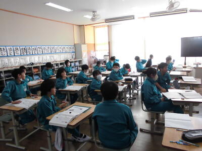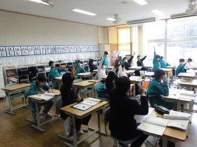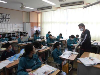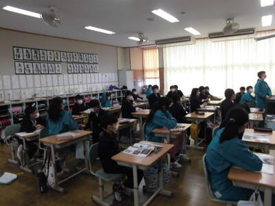 6年1組は社会科。世界に歩み出した日本の学習です。