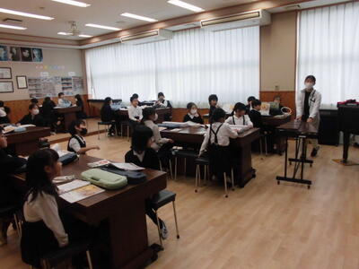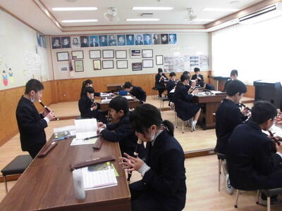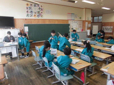 5年2組は音楽科「風とケーナのロマンス」をリコーダーで演奏します。