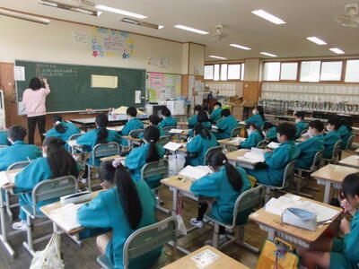 5年2組は算数科。単位量あたりの大きさの学習です。