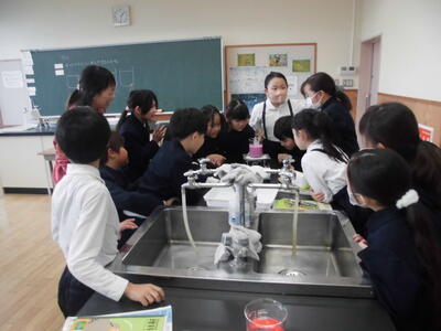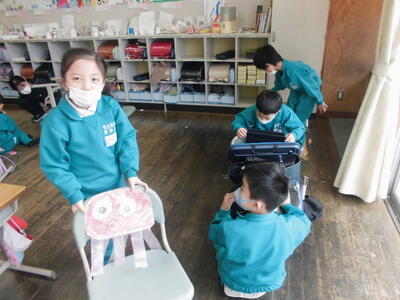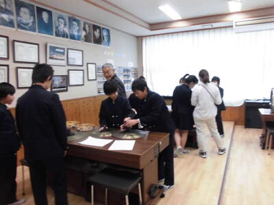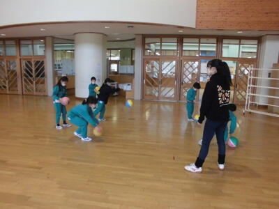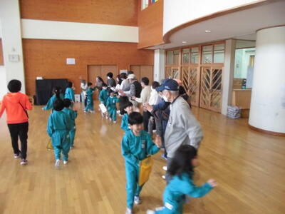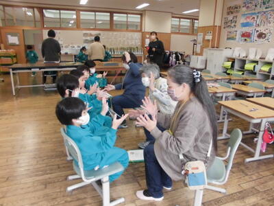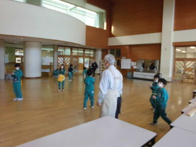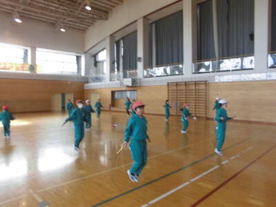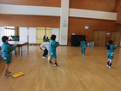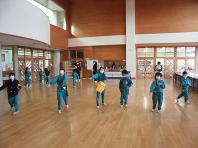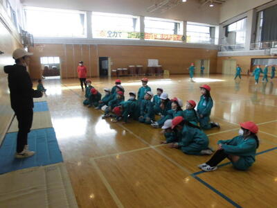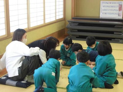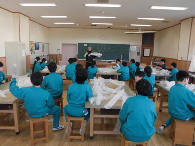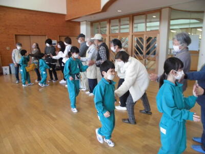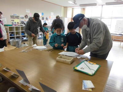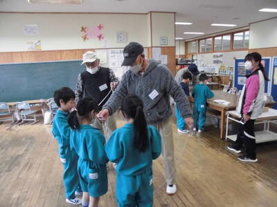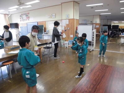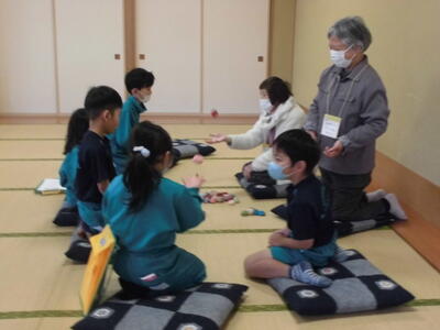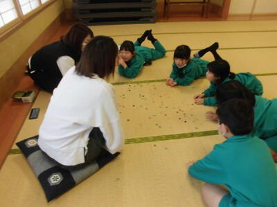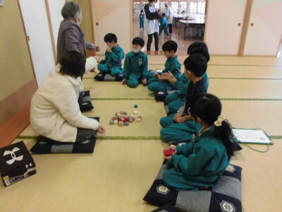 2・3校時に1年生は昔遊びを体験しました。講師の先生方にやさしく教えていただきながら楽しく活動していました。