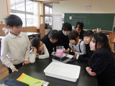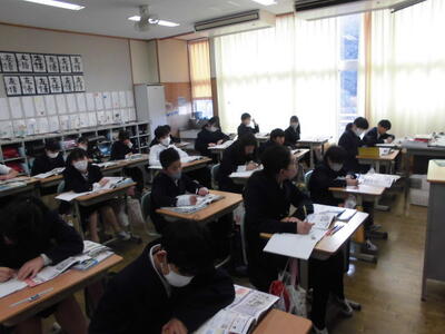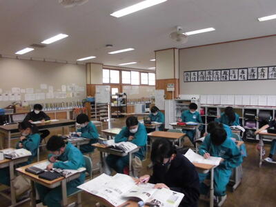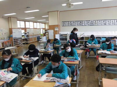 5年1組は理科。テーマにそって新聞作りを進めています。