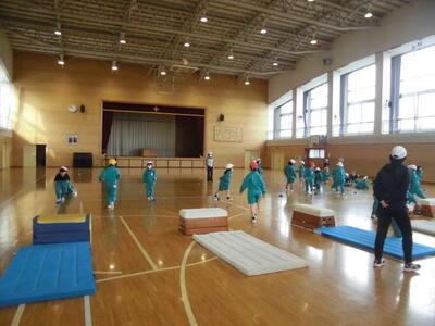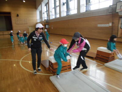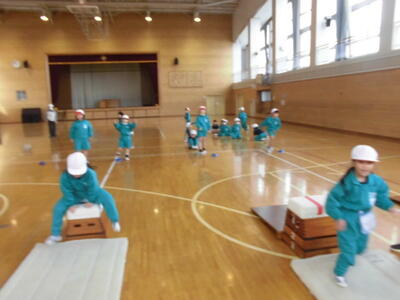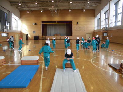 1年生は体育科です。跳び箱を使って身体を動かしました。楽しそうです。