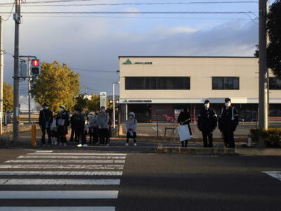 今朝の登校時に、本宮警察署の方々が横断の様子を見守ってくださいました。