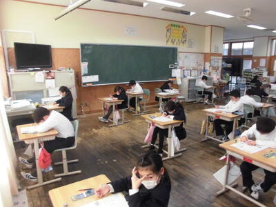4年2組は算数科。計算のきまりの復習問題に挑戦です。