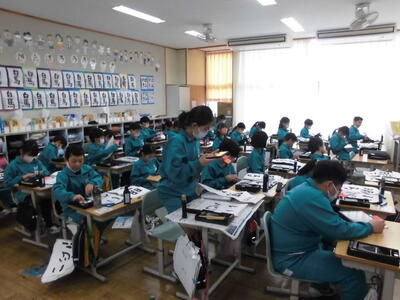 2年1組はタブレットで動画を作成しました。2年生すごいです。