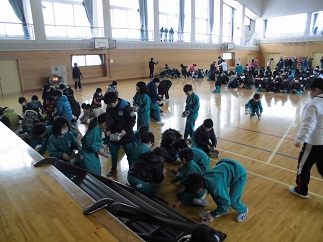 2月16日(金)、「シェイクアウトふくしま」安全確保行動訓練を実施しました。地震が発生した時、自分の身を自分で守るために「落ちてこない」「倒れてこない」「移動してこない」場所で、姿勢を低くして頭を守り、動かないでじっとしている安全確保行動を実践しました。その後、Jアラート避難訓練と同様に校舎内の避難場所に集合しました。万が一のことを想定し、子どもの命を守るための安全指導をこれからも続けてまいります。