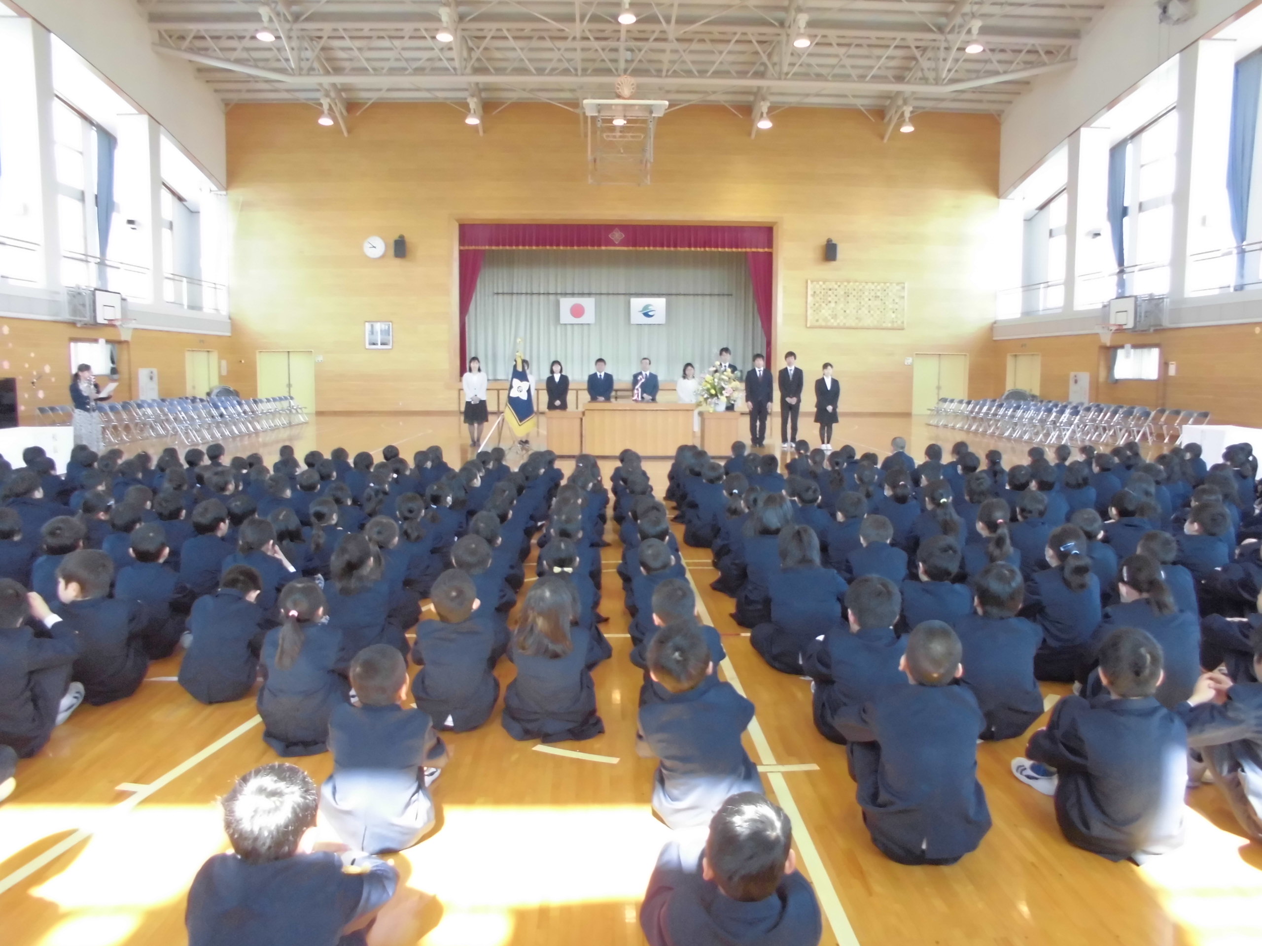 卒業生のみなさん,これからも「まゆみプライド」に象徴される本校の精神を胸に,中学校でも大きく羽ばたいてください。我々教職員一同いつも応援しています。