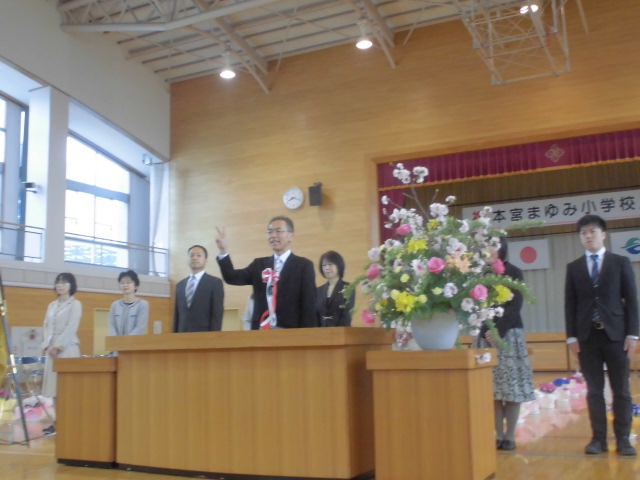本日、離任式が開催されました。晴天の中、全校児童やたくさんの保護者の皆様、中学生や高校生になった卒業生に見送られながら、菅野敦子校長をはじめとする職員11名が、慣れ親しんだ本宮まゆみ小学校とお別れしました。退職・転出職員への本校在職中における地域や保護者の皆様方からの温かいご指導とご支援に対しまして、心より厚く御礼申し上げます。また、4月2日より着任いたします教職員に対しましても,退職・転出職員同様のご指導,ご鞭撻の程をよろしくお願いいたします。