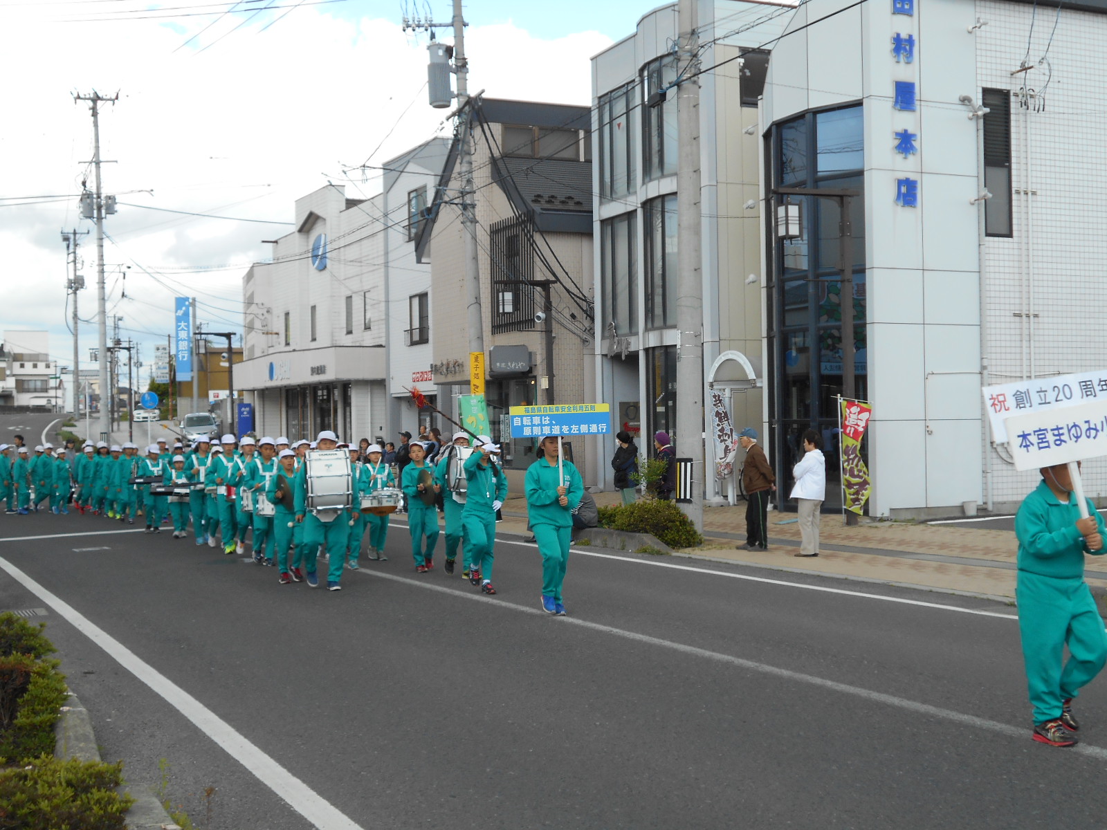 本日、本宮市内の小学校7校が一堂に会して、本宮市小学校鼓笛パレードが開催されました。天候の心配はありましたが、予定のコースで行いました。本校の子どもたちも、緊張の中ではありましたが、多少の雨や風に負けず、堂々と演奏及び行進をすることができました。沿道からは大変多くの保護者の方々や地域の方々がご声援を送ってくださいました。楽器の運搬や交通指導にご協力いただきました皆様に感謝申し上げます。