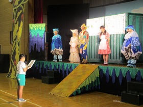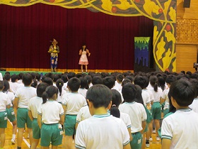 9月30日(金)、鑑賞教室が開かれました。学校に劇団トマト座をお迎えし、ミュージカル「オズの魔法使い」が上演されました。子どもたちは劇団の方々の迫真の演技に引き込まれている様子が見られました。10月29日(土)には平成28年度まゆみっ子発表会が予定されており、劇を予定している学年は上手に演技をするこつを探っていました。上演後は劇団の方々と一緒に歌ったり、ダンス体験をしたりして、楽しいひとときを過ごしました。