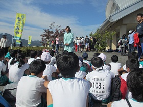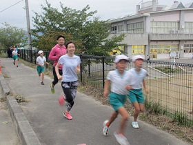 湯田さんには、放課後の特設陸上部の練習にも参加していただき、子どもたちと一緒に走っていただきました。子どもたちのやる気も高まり、練習にも気合が入っていました。