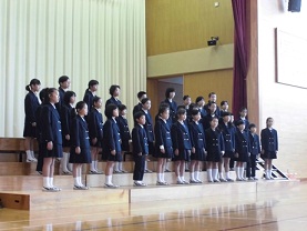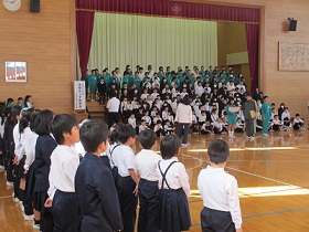 10月24日(月)の5校時、全校児童による合唱練習が行われ、また、まゆみっ子発表会でのならぶ場所の確認もしました。一人一人がよい表情で歌っていました。