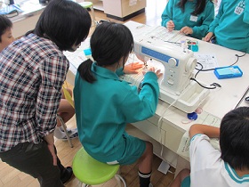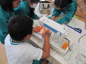 9月20日(火)、第5学年家庭科でミシンを使って裁縫の学習が行われました。家庭科の学校支援ボランティアの皆さまに指導に入っていただき、子どもたちは上糸と下糸をセットすることから挑戦しました。すぐに直線縫いや返し縫いを覚えることができ、意欲的に活動する姿が見られるなど大変充実した学習となりました。ここでの学びを活かして、今後は作品作りに取り組んでいきます。大変お世話になりました。
