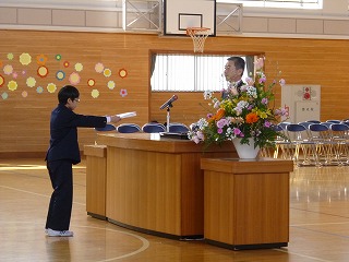 20日(金)には、修了式が行われました。5年生の代表が修了証書を受け取り、1.2.4年生の代表が1年間頑張ったことを発表しました。