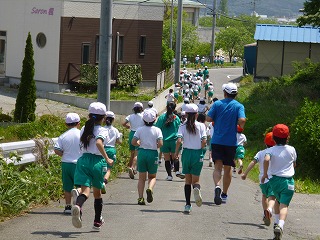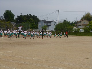 5月18日(月)から、業間マラソンが始まりました。青空のもと、子どもたち、先生方も元気に走っています。