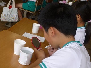 6月5日(金)、8日(月)に2~6年生の歯磨き教室が行われました。2年生は「歯を丁寧にみがこう」、3年生は「自分の口の中をみてみよう」、4年生は「おやつの選び方」、5年生は「かむことの大切さ」、6年生は「歯肉炎について」の内容で、歯科衛生士さんに教えていただきました。5年生は、かむ回数によって唾液の量が違うことをするめとビスケットを食べて、実際に確認しました。
