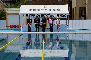 6月29日(月)、本宮市子ども屋外プールの落成式が行われました。元オリンピック選手の中村真衣さんの模範泳法や水泳教室が行われました。世界一流の泳ぎに子どもたちは感動していました。