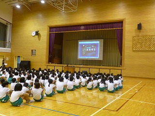 7月3日(金)、たなばたふれあい集会が行われました。企画委員の子どもたちの「たなばた」の読み聞かせがスクリーンを使って行われました。そのお話に関連したクイズを異学年の児童がペアになり答えるというふれあい活動も行われました。