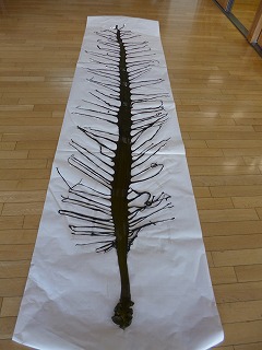 海からとってきたわかめです。       模造紙にはりつけて展示です。