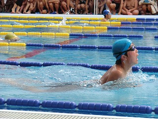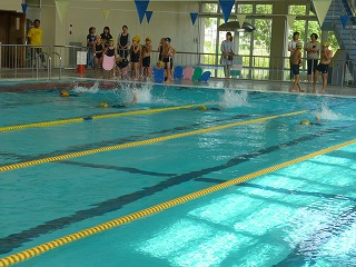 今年はお盆が過ぎてからの天候不順により、水泳記録会を本宮市民プールに場所を変更し行うことになりました。1年生は水遊び、2年生以上は記録会を行いました。