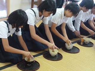 7月15日(水)、「茶の湯・室町文化体験」という学習を6年生が行いました。お茶をたて、お菓子をいただき、茶会を楽しみました。