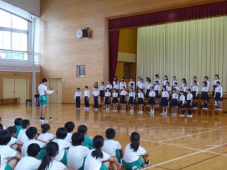 5月26日(火)、南達陸上大会の選手壮行会が行われました。4年生の応援団を中心に、5,6年生にエールを送りました。次の日、5,6年生はたくさん入賞し、応援も頑張りました。