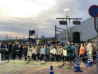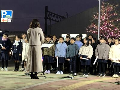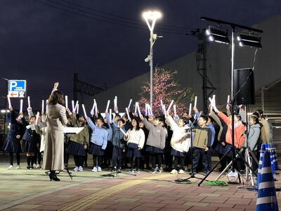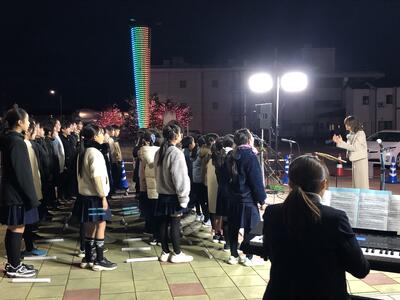 今日、夕方から行われた本宮市イルミネーション点灯式に本校合唱部が招かれ、歌声を披露しました。