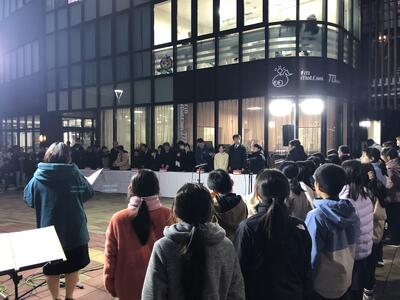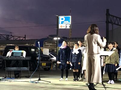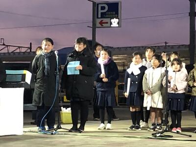 すてきなイルミネーションを前に素晴らしい歌声を披露した子どもたちに大きな拍手が送られました。