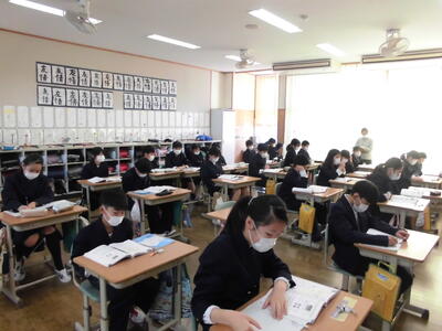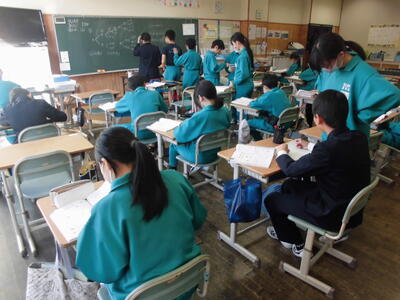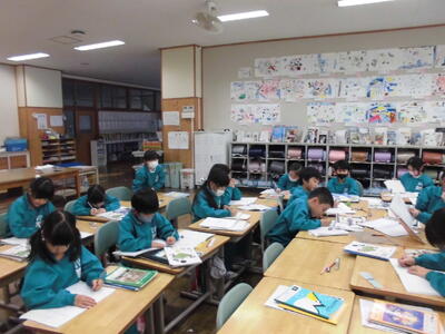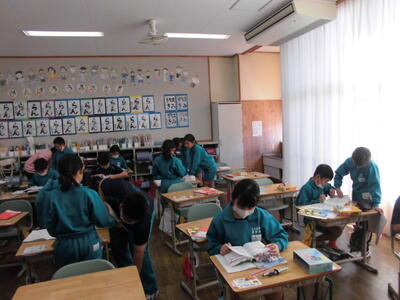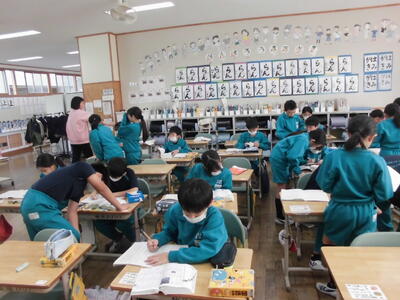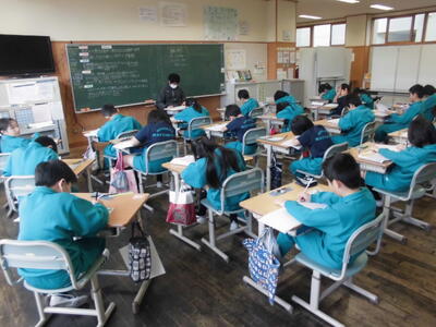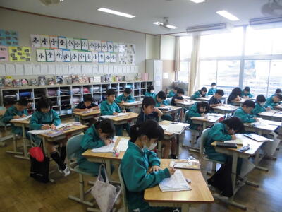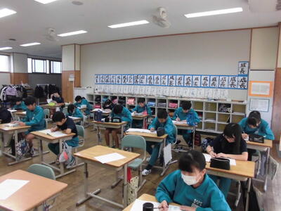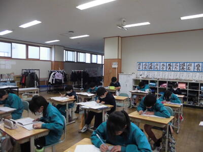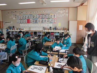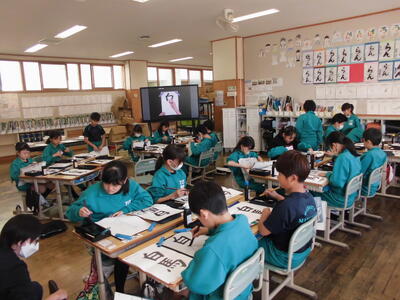 4年2組は書写「白馬」を漢字の大きさに気をつけながら書いていきます。