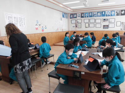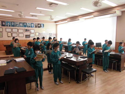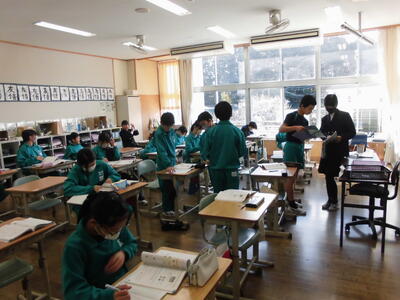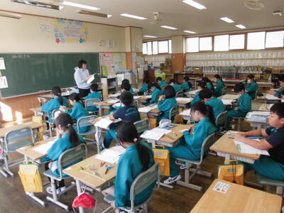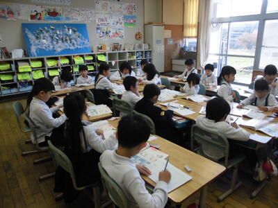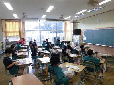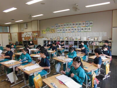 3年2組は音楽科「ふじ山」の学習。日本一のふじ山を表現するためには、どのような歌い方をすればよいのかを考え合いました。