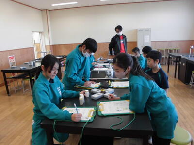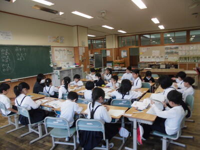 講師の先生をお招きして6年2組の放射線教育が行われました。講師の先生の体験をまじえたお話を真剣に聴く姿が見られました。