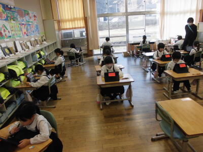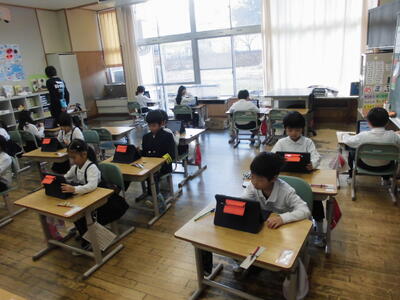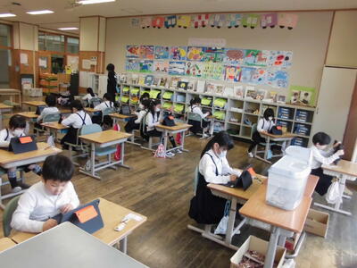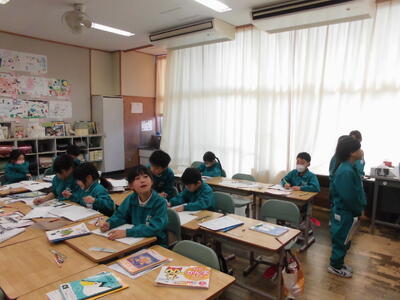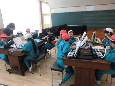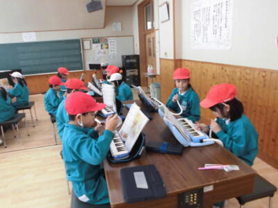 2年1組は音楽科「こぎつね」を鍵盤ハーモニカで演奏します。