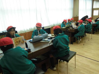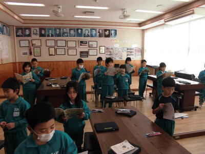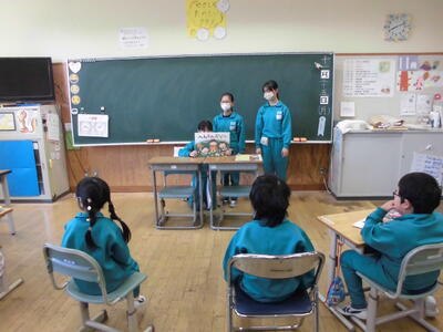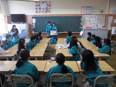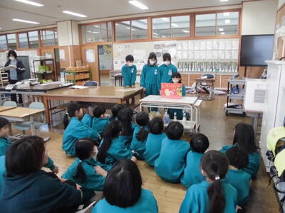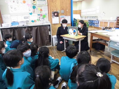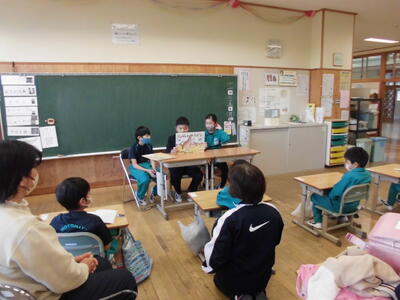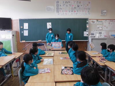 図書委員会の児童が1年生と2年生の教室を訪れて、紙芝居を読みます。