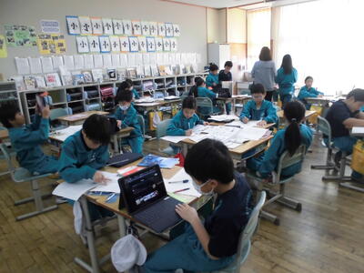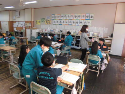 5年2組は外国語科。オリジナルタウンの道案内を英語で行います。