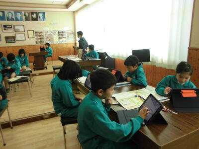 4年1組は国語科。国語辞典でことばの意味を調べます。