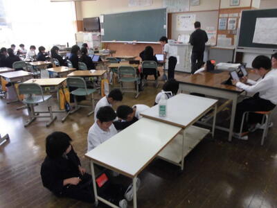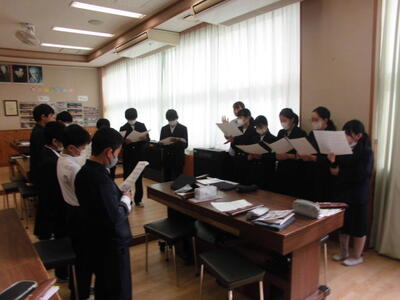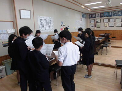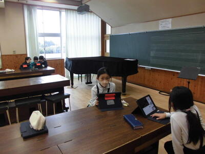 6年1組は音楽科。学習発表会で披露する合唱曲の練習です。