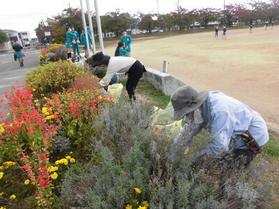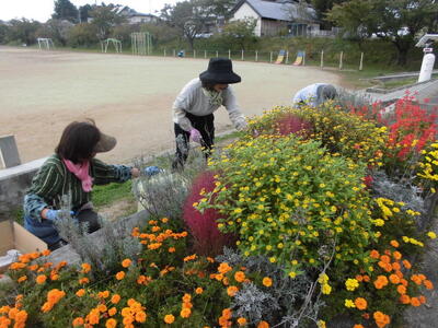 2024年10月23日 09時28分今日もまゆみっ子会「お花クラブ」の皆様が来校されて、花壇の整理を行っていただきました。