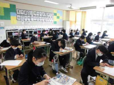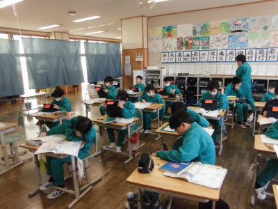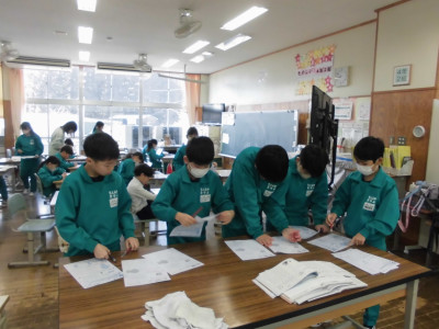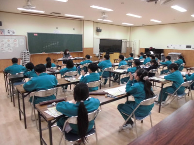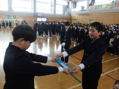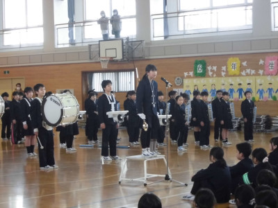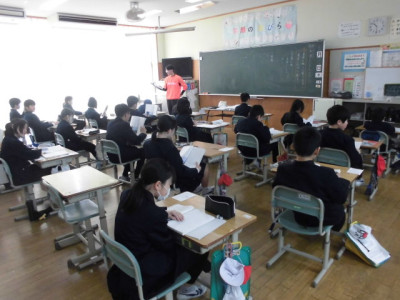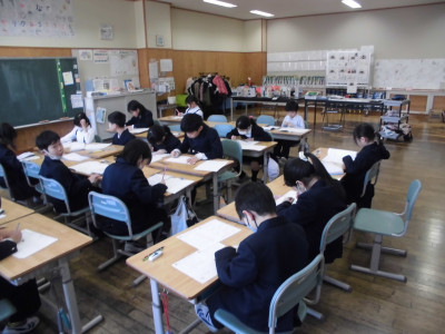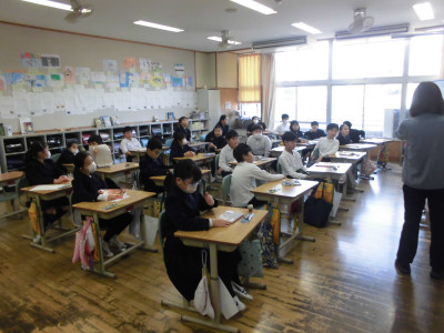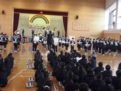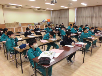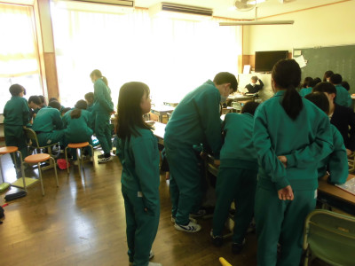 3校時に防犯教室を実施しました。今回は、不審者が体育館より侵入し、西階段から2階へ上がり、6年教室前を徘徊しているという想定で行いました。警察の方が不審者役となり、教職員が発見して対応したり、各教室ではバリケードを作って不審者の侵入を防いだりしました。子どもたちが体育館に避難した後、警察の方から「いかのおすし」について具体的に指導していただきました。いざという時、大きな声が出るように、普段から元気な声であいさつをするといいですよというアドバイスもいただきました。