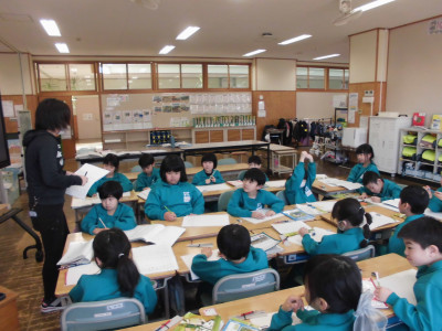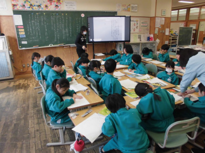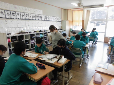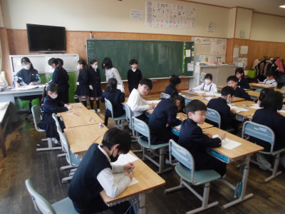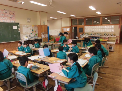 1年1組では、「班の友達と楽しく話し合うにはどうしたらいいのかな」をめあてに、国語の学習をしました。ミッキーやニャーゴも登場して、楽しく話し合うには聞き手の反応が大切であることに気付きました。ノートもしっかり書くことができるようになりました。