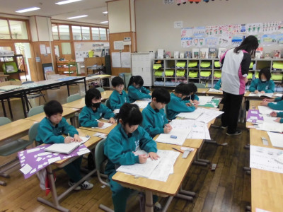 歯科衛生士の方をお招きして、歯みがき教室を行いました。1年生は、歯の王様「6歳臼歯」を教えていただいたり、おうちの方と一緒に染め出しをしたりして学習しました。これからも毎日上手にみがくことができるといいですね。