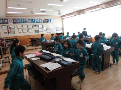 本宮市国内派遣交流事業では、本宮市と同じ「へそのまち」である北海道富良野市において、富良野市の子どもたちと交流したり、施設や名所を見学したりして異なる風土や文化に触れることを目的に、本校からも4名の児童が参加しました。本日、その4名の児童が、昼の放送で体験したことを発表しました。北海へそ踊りに参加したり、富良野市の子どもたちとラフティングをしたりして楽しい思い出がたくさんできたようです。