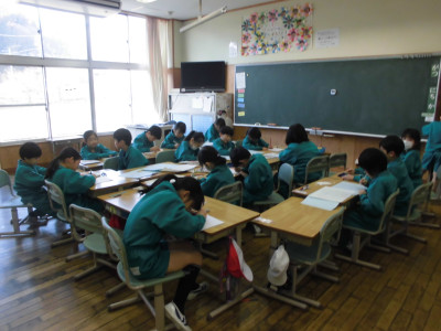 お昼の放送で、4年生の代表児童が「夏休みのふり返りと2学期のめあて」の作文発表をしました。チャレンジできた夏休みだったこと、元気よく誰にでもあいさつできる友達をお手本にして、自分もあかるいあいさつを心がけたいことなどを発表しました。まゆみっ子のみんなが、2学期にがんばりたいこと、楽しみなことを胸に秘めています。その一つ一つを大切にしていきたいと思います。