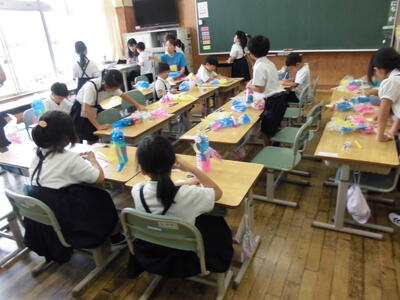 3年2組は社会科。店ではらくひとについて考え合いました。