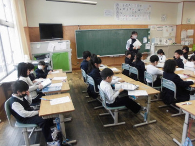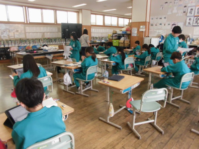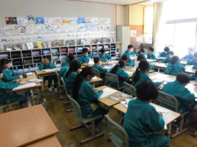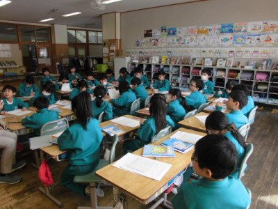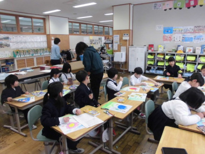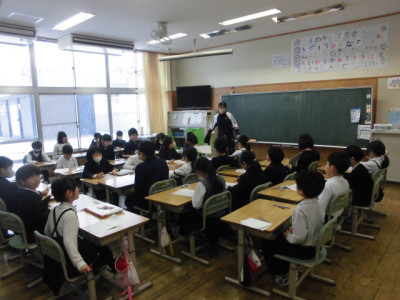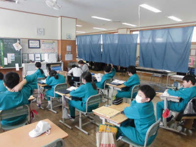 人権擁護委員4名の方をお招きし、人権教室を行いました。子どもたちに豊かな人間関係づくりの力が育まれるように、人権擁護委員の方々と授業を計画して行いました。「無人島SOS」という題材で、相手の意見を尊重することや自分の意見も上手く伝えることなどを学びました。