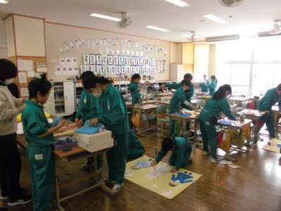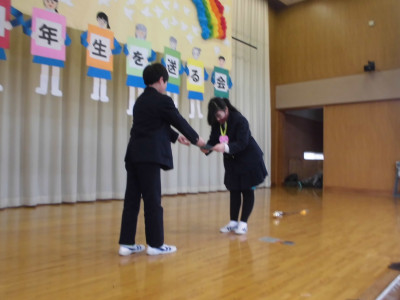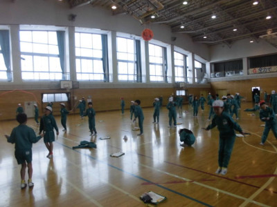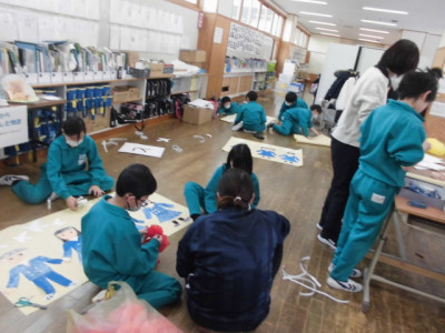 人権擁護委員4名の方をお招きし、人権教室を行いました。風船を使ったゲームをしたり、大切な言葉を協力して完成させるゲームをしたりして、友達と力を合わせる大切さを学びました。