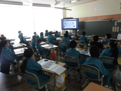 4年生は、下水道公社の出前授業を受けました。流入水、放流水、しょうゆ、透明なジュース、水道水などの汚れを予想し、実験して汚れ具合を調べました。しょうゆや透明なジュースは、思っていたよりも自然環境に影響を与えることを知りました。